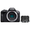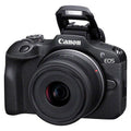 Bring your special moments to life with the Canon EOS R100. With the helpful guided menus and Creative Assist, you don't need to be an expert to get the picture you want, capturing every moment in detail-rich clarity thanks to its large 24.1 MP APS-C sensor and intelligent Dual Pixel CMOS Auto Focus. Wi-Fi and Bluetooth connectivity allows you to shoot remotely and seamlessly transfer images to your smartphone. Paired with the compact RF-S 18-45mm Lens, this lightweight kit is perfect for capturing everything from vlogs to family snaps.