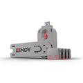 To use, simply attach a lock to the key and insert it into the USB port. Release the sliding mechanism on the key to leave the lock in place. To remove, simply insert the key back into the lock and pull away.