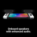 Pick it up and play with the Joy-Con controllers attached. Nintendo Switch (OLED model) includes an OLED screen with a slimmer bezel. The large screen's vivid colours and high contrast deliver a rich handheld and tabletop gaming experience, bringing games to life whether you're racing at top speed or squaring off against enemies.