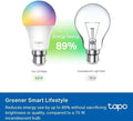 Tapo L535B reduces energy use by up to 89% without sacrificing brightness or quality, compared to a 75 W incandescent bulb. It is designed to operate efficiently in your home for longer periods with less energy consumption.