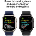 New finish. Never quit. The ultimate sports and adventure watch. Now in black. Apple Watch Ultra 2, is now available in a satin black titanium finish. It features multi-day battery life, precision dual-frequency GPS and Apple's brightest display ever. It also has a durable titanium case, sapphire front crystal and customisable Action button. Advanced features for runners, cyclists, swimmers, hikers, divers and more. Super-bright Always-On Retina display. Incredibly accurate precision dual-frequency GPS.