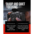 SHARP, QUIET FOCUSING - The STM (Stepping Motor) technology focuses very smoothly and in near-silence, ideal for stills and video. Super Spectra Coating on the lens elements ensure quality.