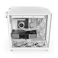 The H9 Flow is a spacious mid-tower ATX case built for high-performance builds, balancing airflow and aesthetics. Its dual-chamber design improves cooling and cable management, while perforated panels, angled fans, and ample fan and radiator support deliver optimal thermal performance.